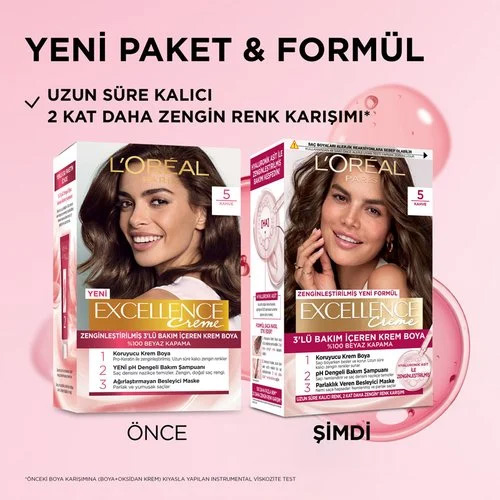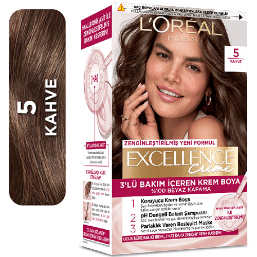 کیت رنگ موی لورال شماره ۵ – رنگ موی قهوه‌ای طبیعی روشن از رنگ موی لورال اکسلانس ، سری Excellence Creme ، موهایی به‌طور واضح سالم‌تر از قبل از رنگ کردن به شما هدیه می‌دهد!